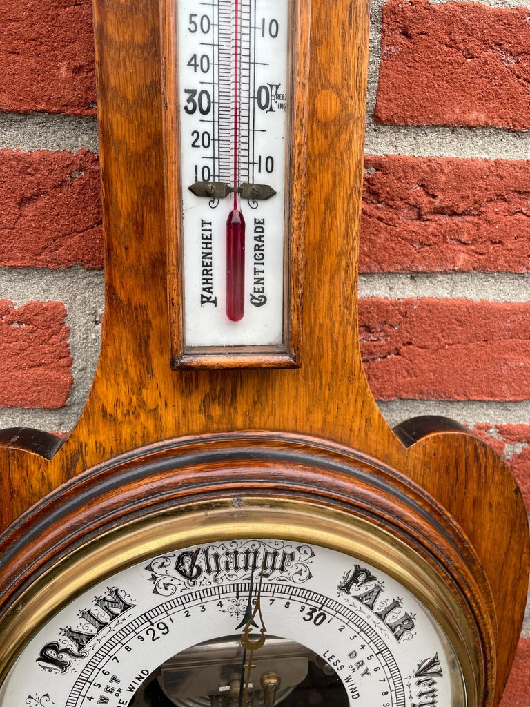 Bargain John's Antiques | Antique Oak Wall Mount Oak Working Barometer ...