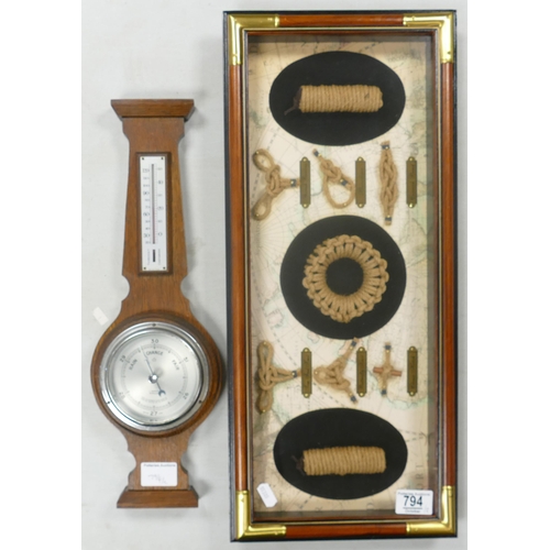 Cased House of Valentina Maritime Knot plaque & oak barometer(2)