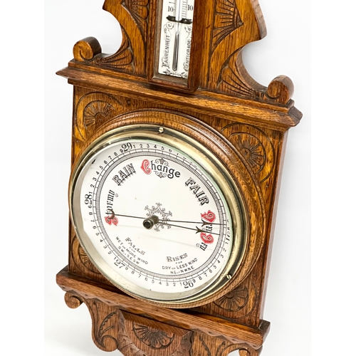 Masterly Carved Gothic Revival Oak Wall Barometer and Thermometer ...