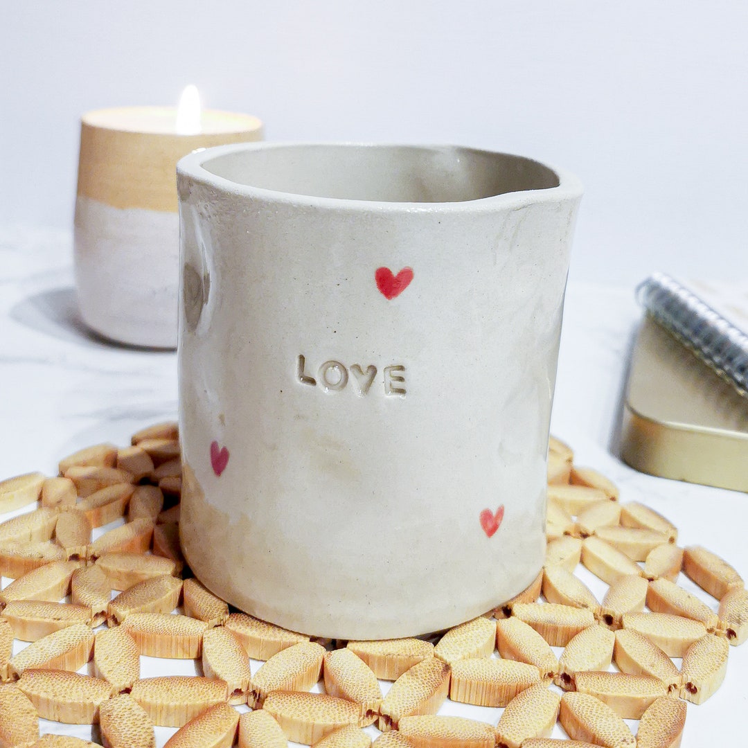 Cup Pottery With Hearts, Mug Without Handle, Handmade, Hand-painted ...
