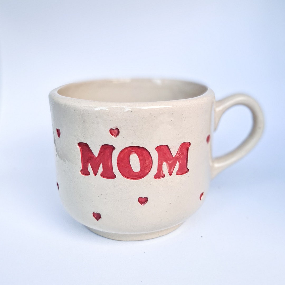Pottery Cup With the Inscription MOM, Hand-painted, Mug With Handle ...