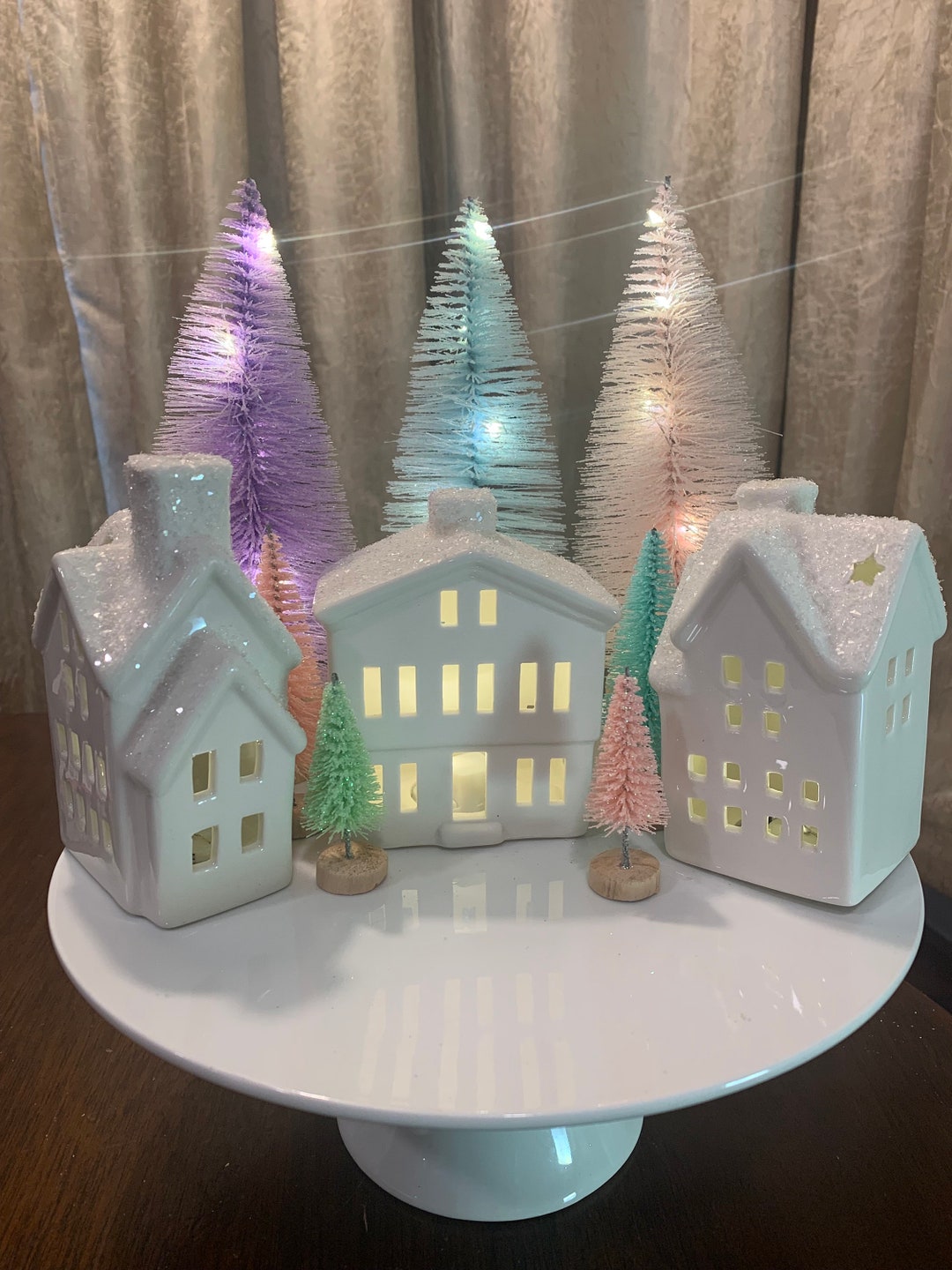 Winter Village Glazed Pottery LED Houses With Snow Covered Rooftops and ...