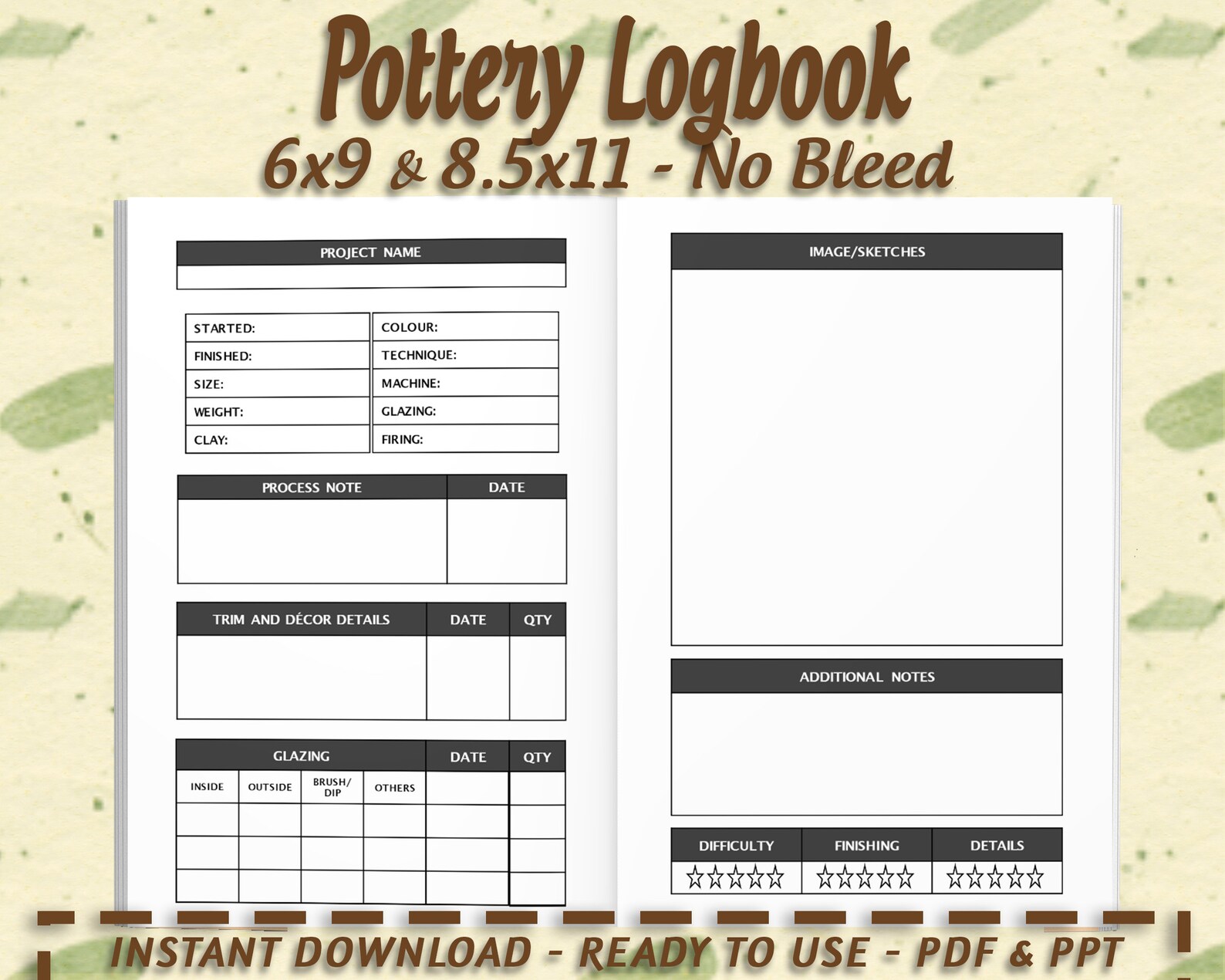 Pottery Journal, Pottery Log Planner, Ceramic Templates, Last Minute ...