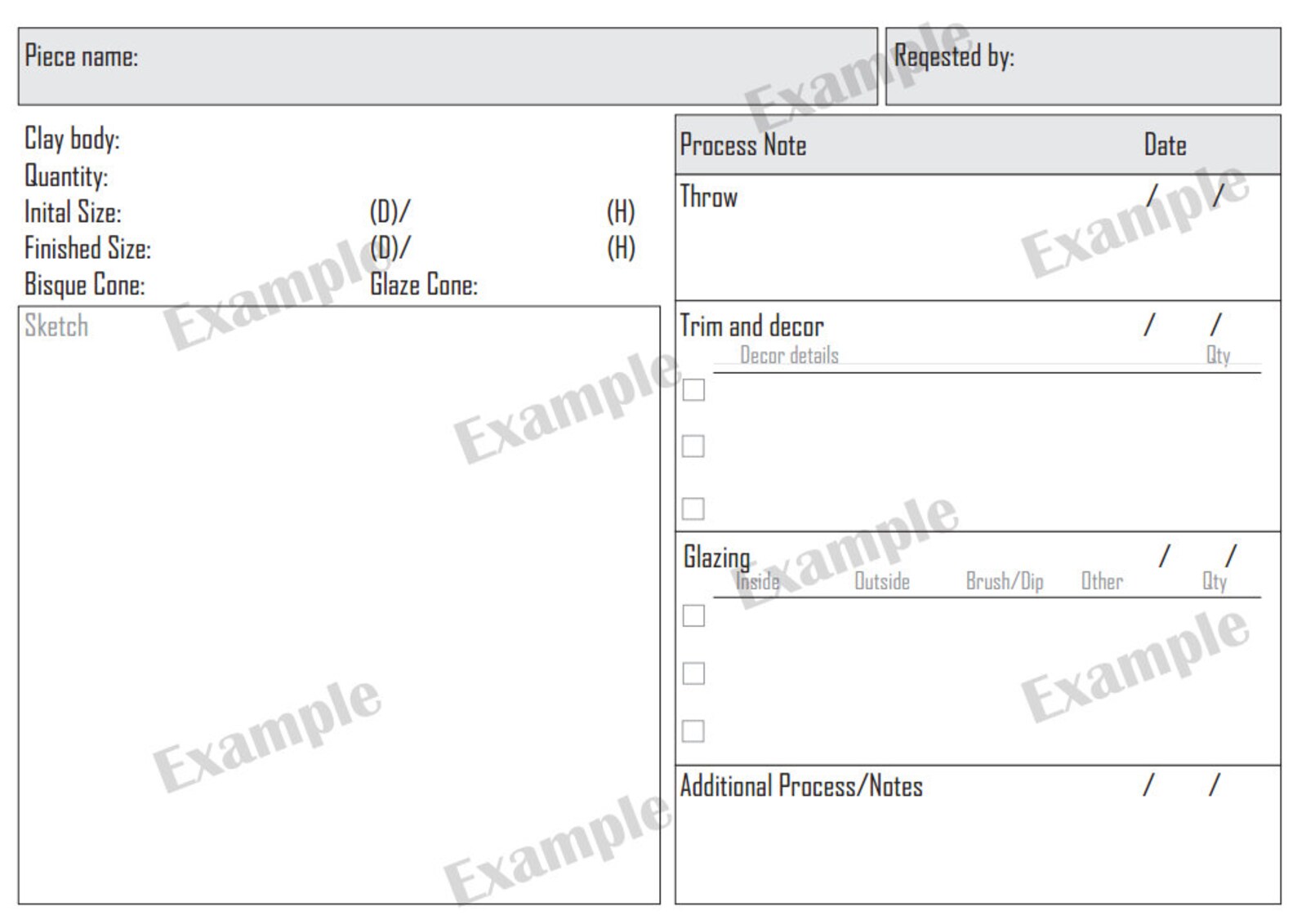 Printable Pottery Log Printable Pottery Process Log Pottery | Etsy UK