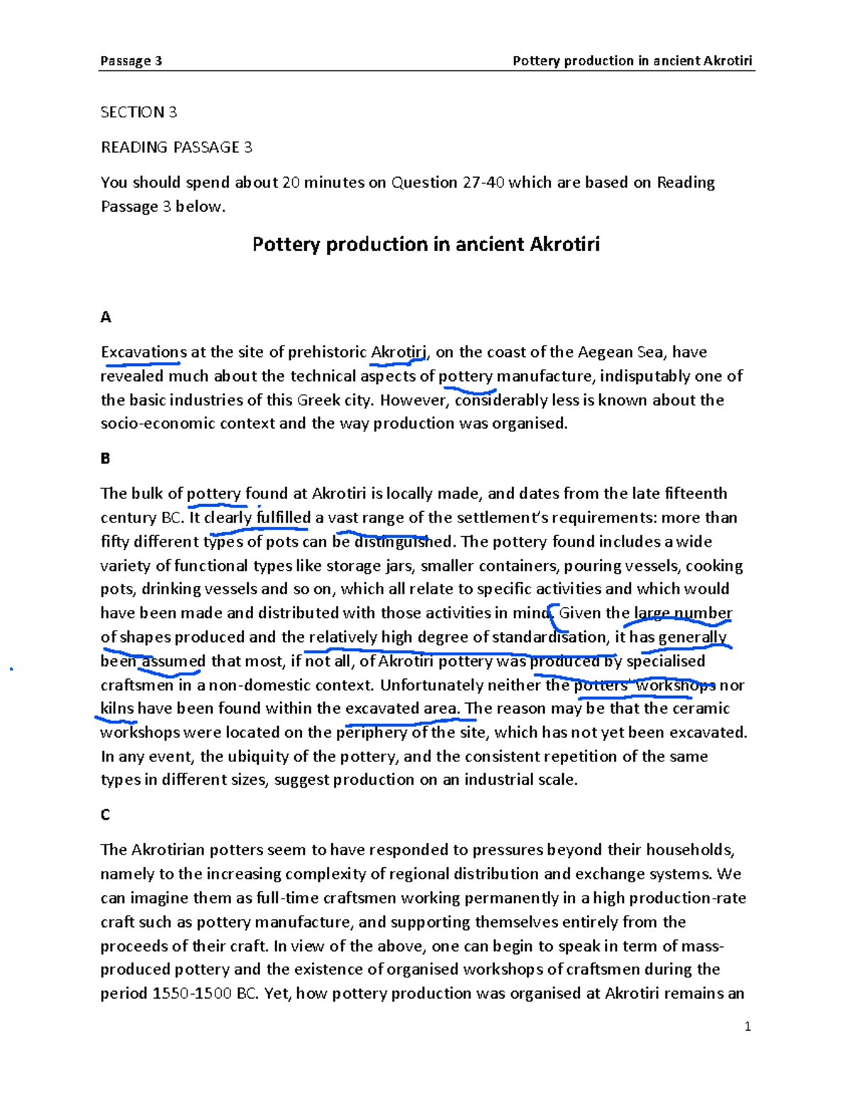 Passage 3 - Pottery Production in Ancient Akrotiri: Questions 27-40 ...