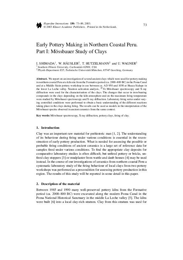 (PDF) Early Pottery Making in Northern Coastal Peru. Part I: Mössbauer ...