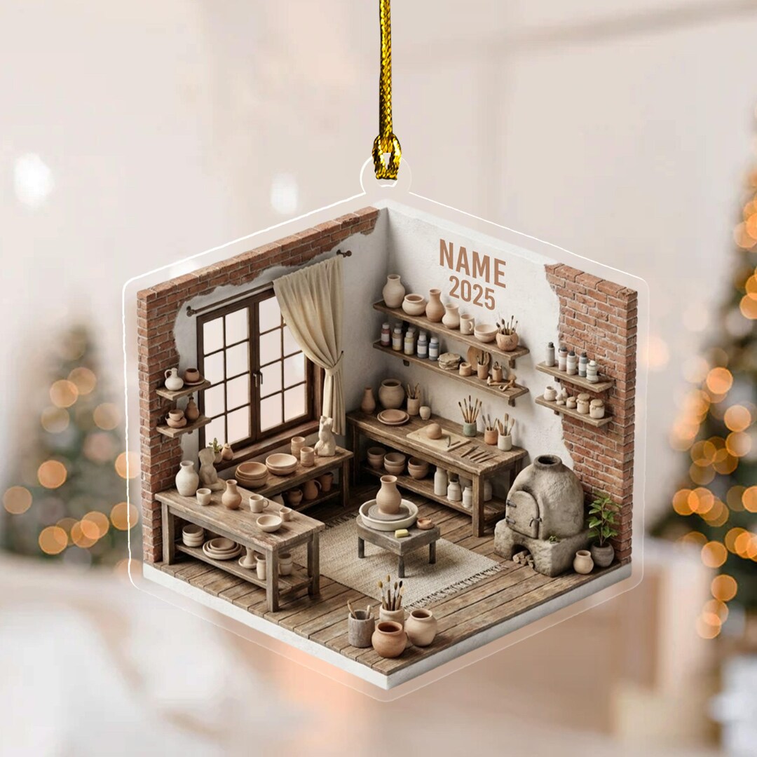 2D Flat Pottery Studio Acrylic Ornament, Personalized Clay Artist ...