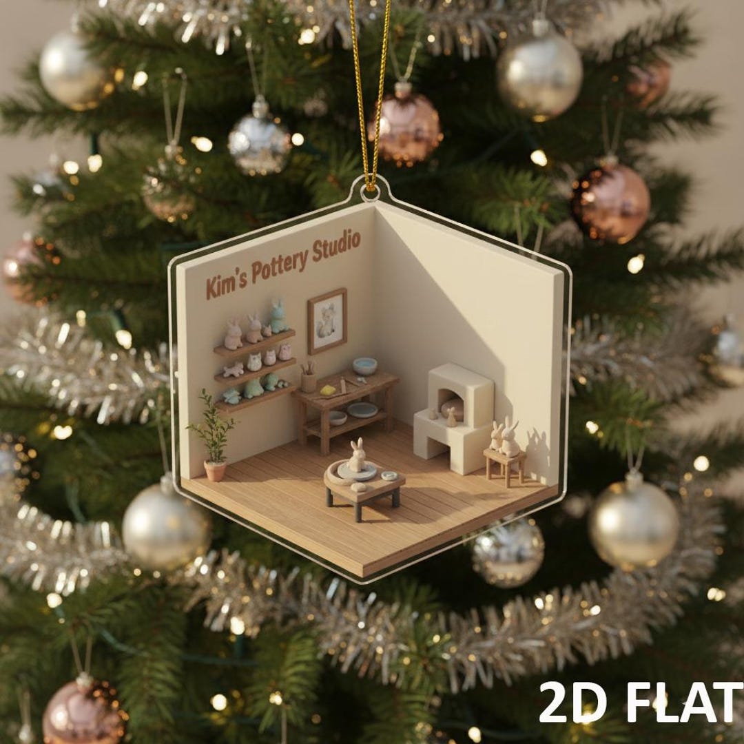 Custom Pottery Studio 2D Flat Ornament, Ceramic Artist Gift, Clay Maker ...