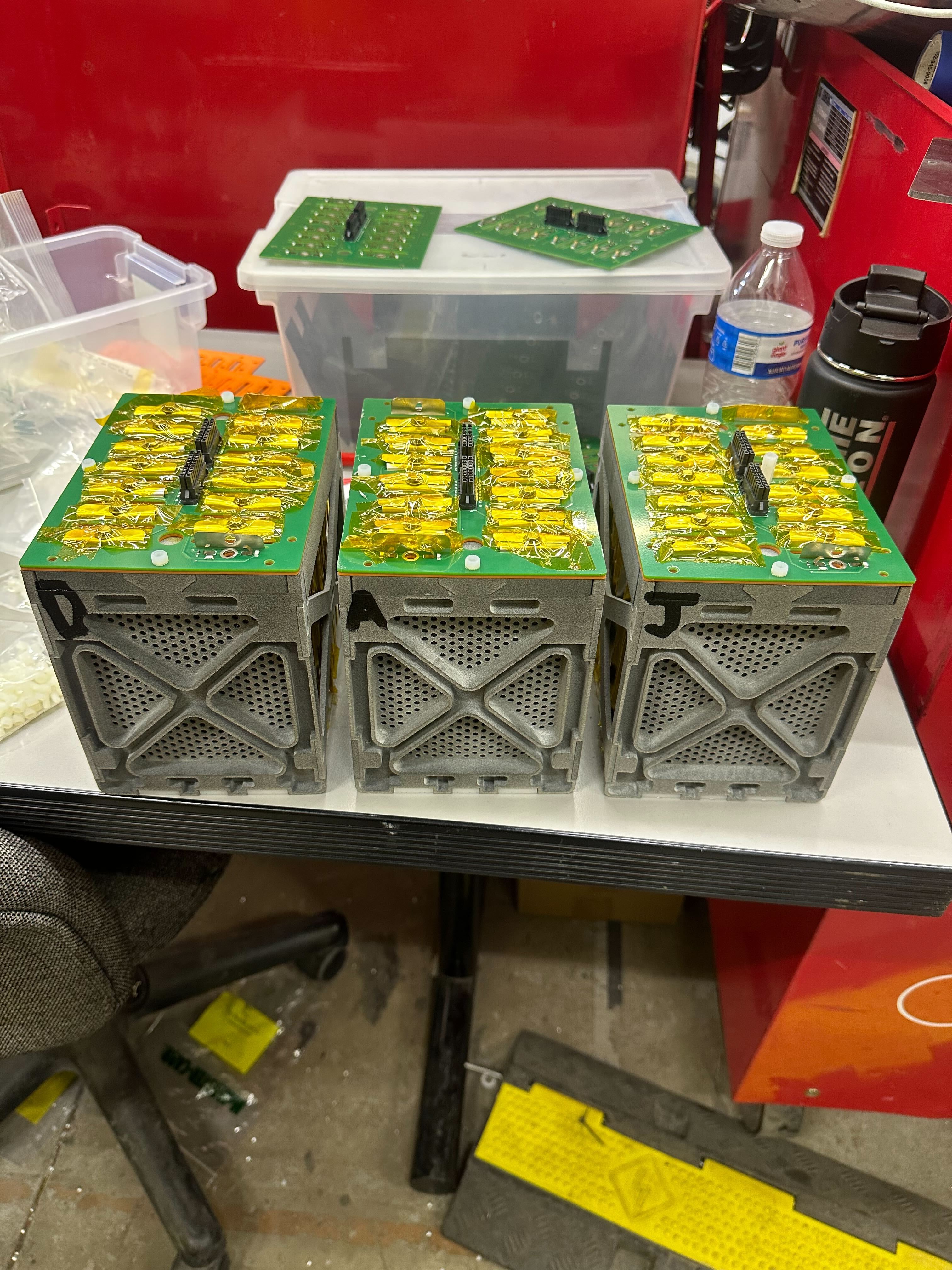 Each of the eight battery modules contains twelve pouch cells and a ...