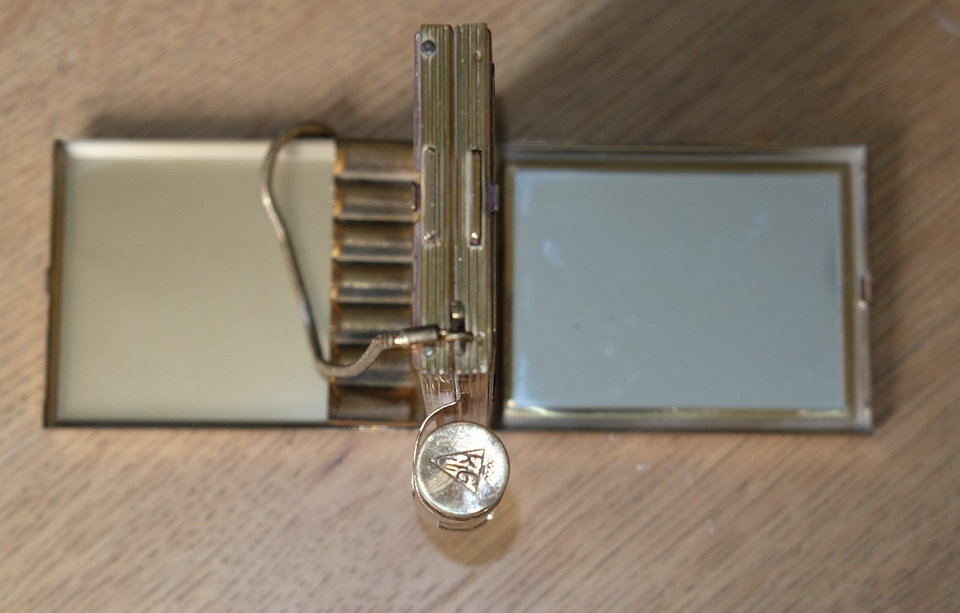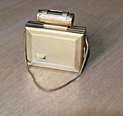 A Vintage KIGU Art Deco Goldtone Party Book Cigarette, Powder Compact ...