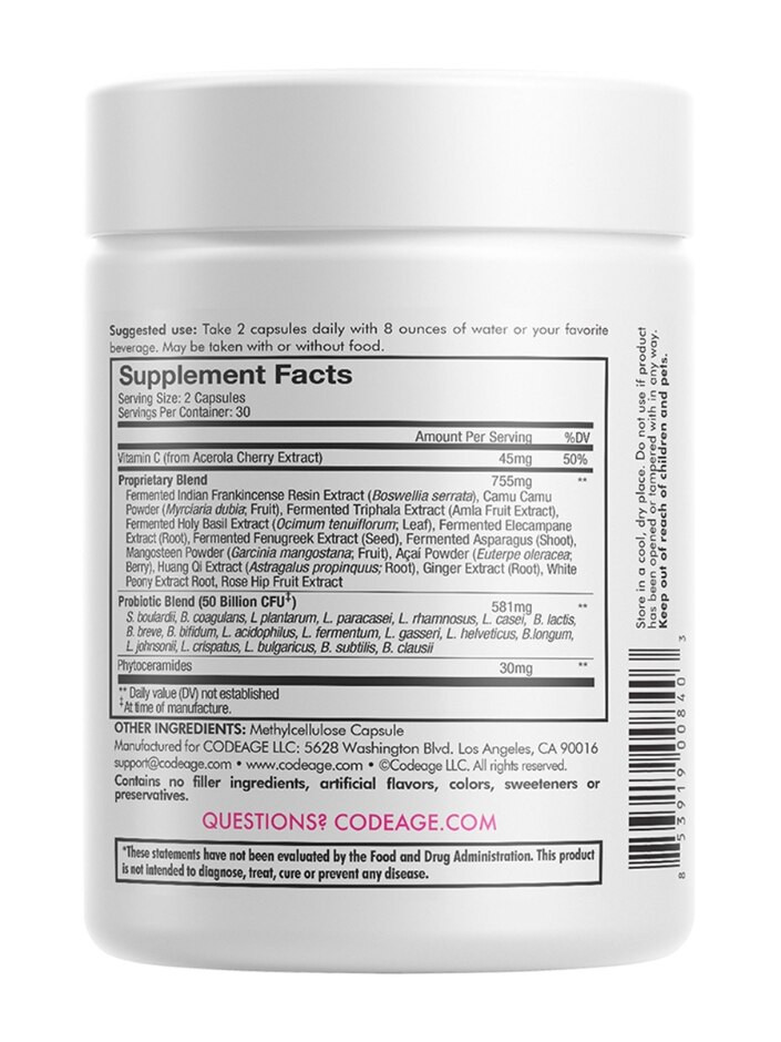Skin Probiotics 50 Billion CFU - Probiotics + Prebiotics Vit C 60 caps