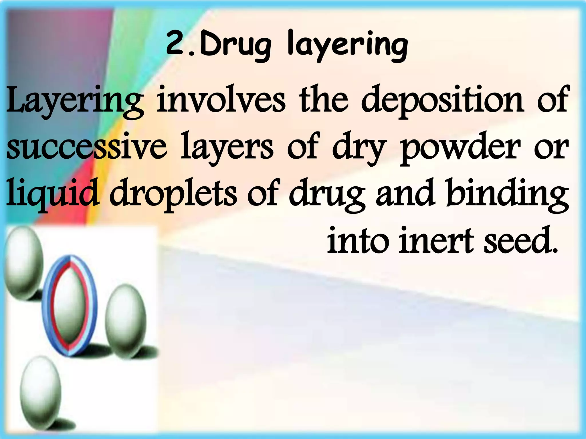 Powder layering Solution/Suspension Layering In this technique the drug ...