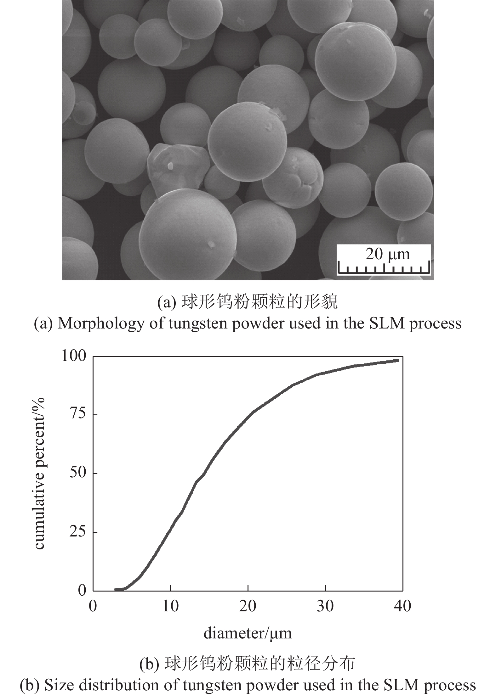 (a) Magnification of the used 316L powder particles; (b) powder layer ...