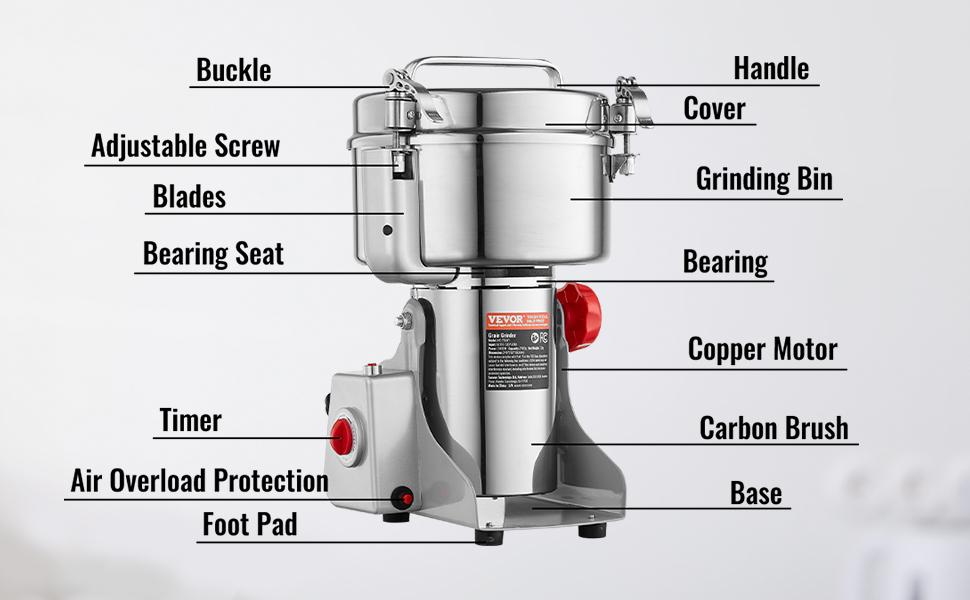 Amazon.com: VEVOR 500g Electric Grain Mill Grinder, High Speed 2000W ...