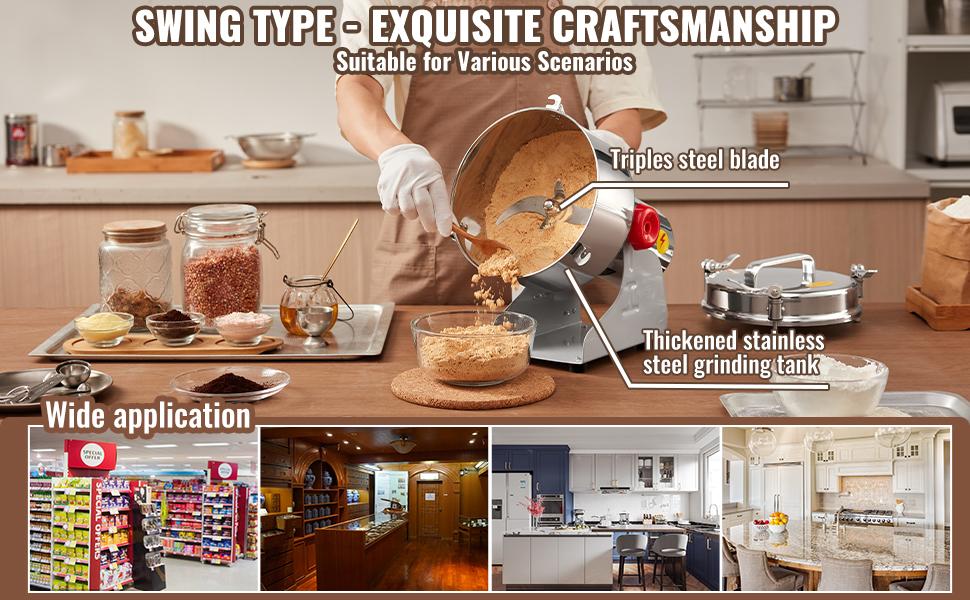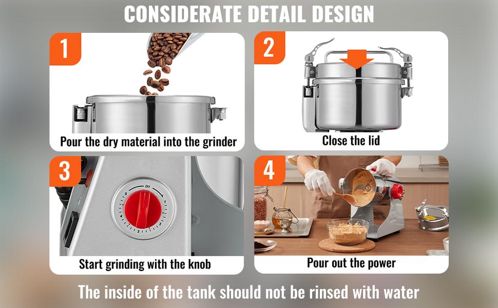 VEVOR 2500g Electric Grain Mill Grinder, High Speed 3400W Commercial ...