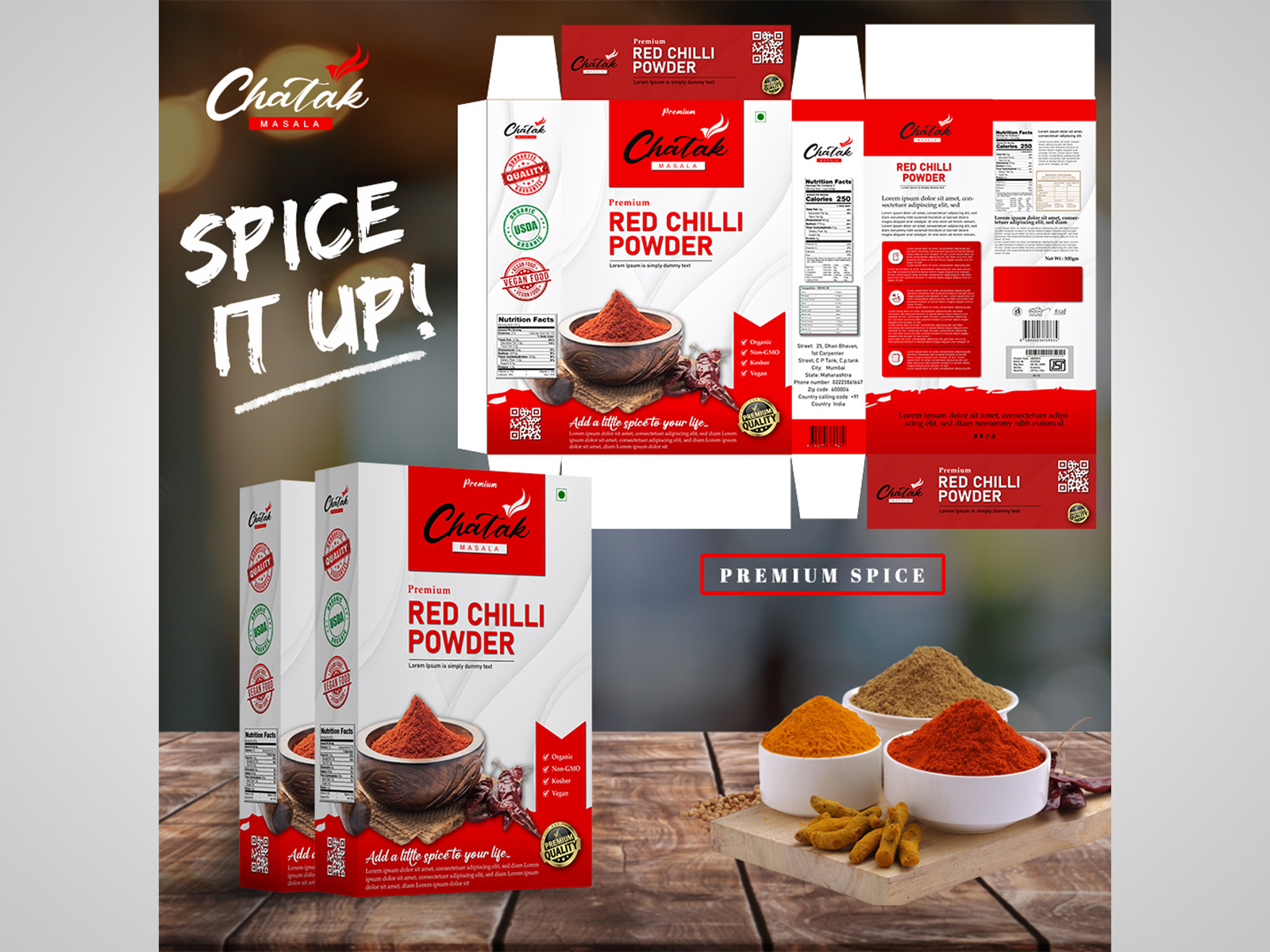 Red Chili Powder (Masala) Box Label Design With Mockup , Poster by ...