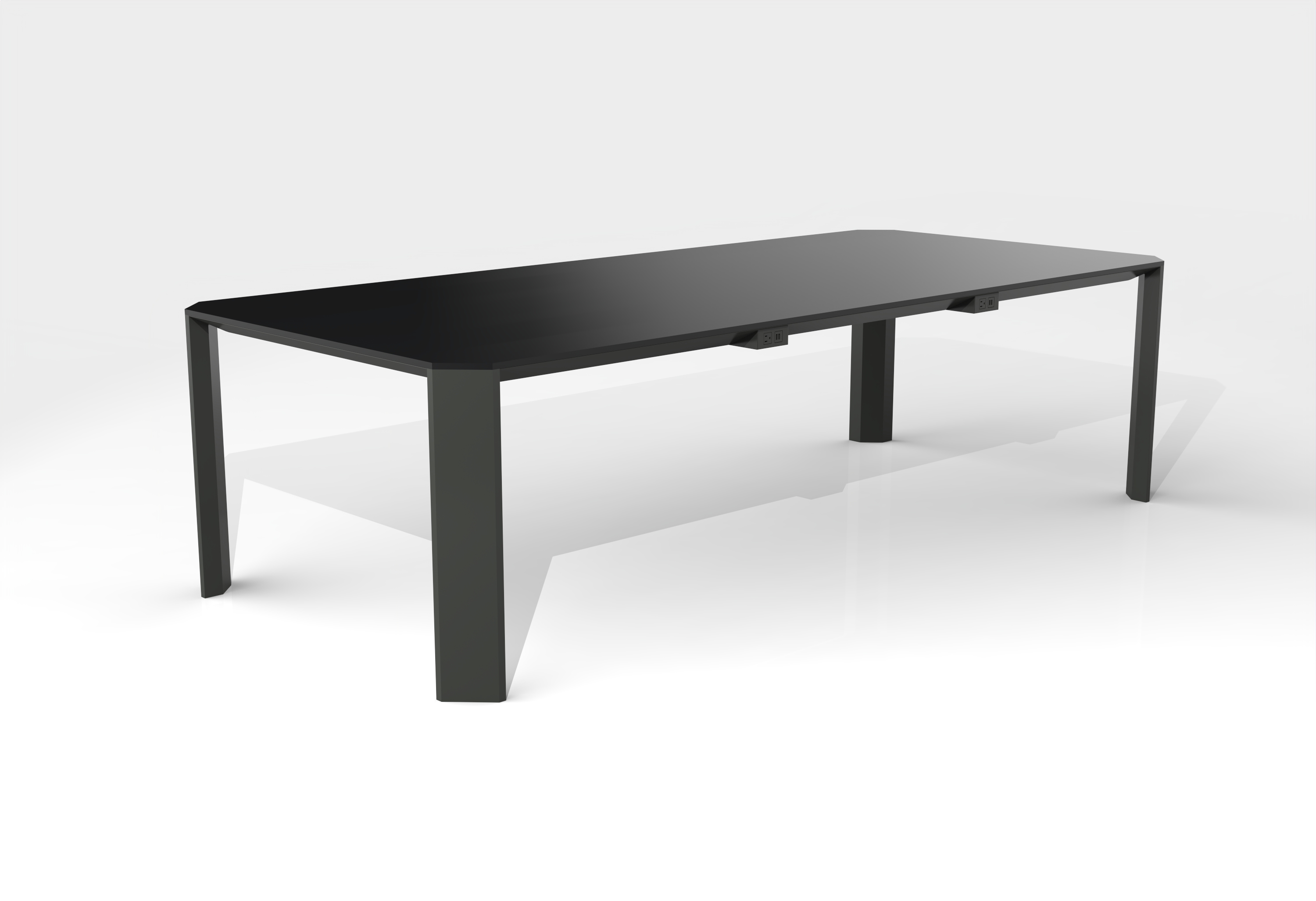 Flow | Conference Table | Black Glass Top | Black Powdercoat Four Post ...
