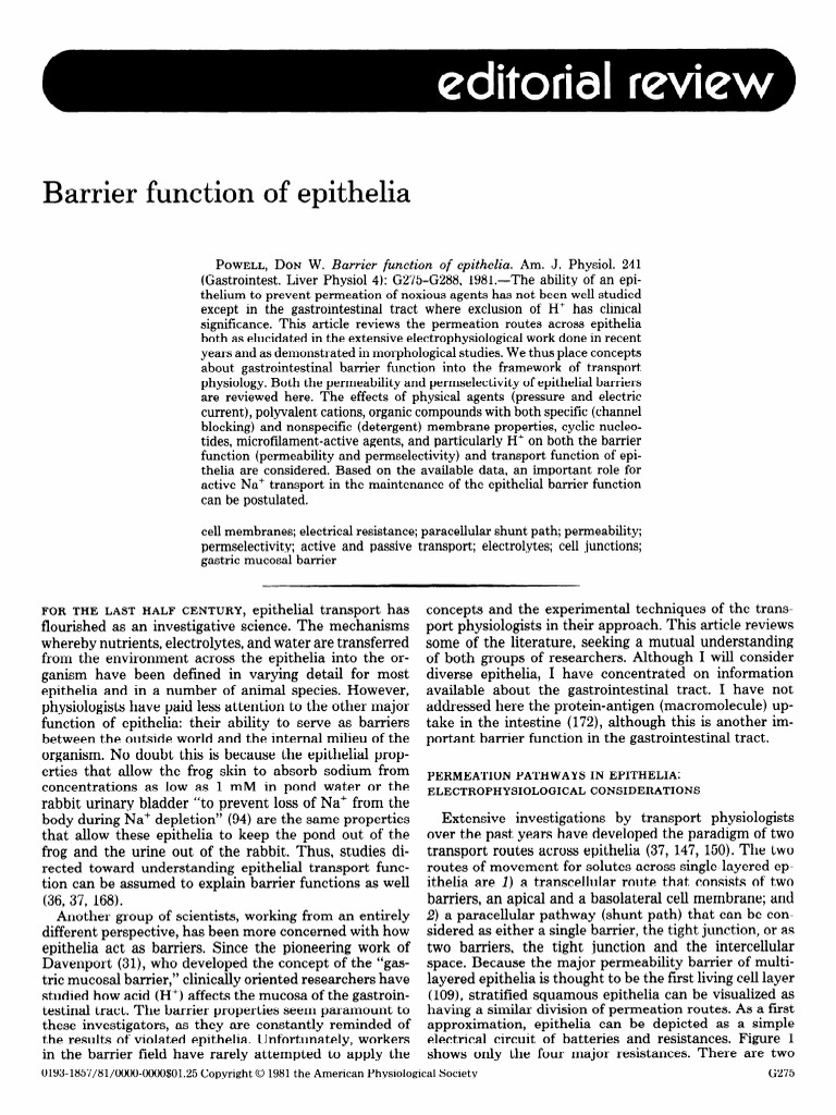 Powell 1981 Barrier Function of Epithelia | PDF | Epithelium ...