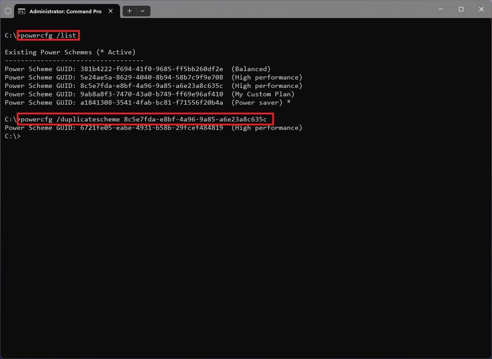 Change Power configuration for performance using PowerCFG