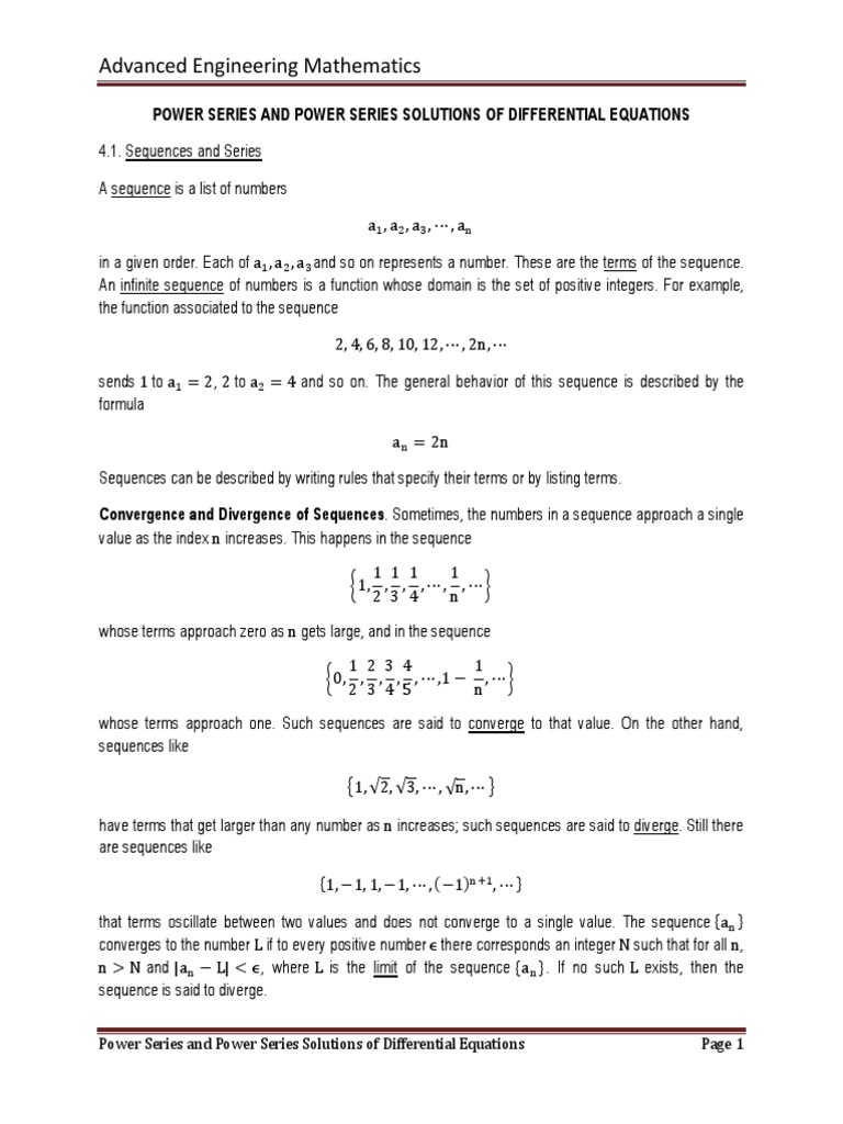 Advanced Engineering Mathematics: Power Series and Power Series ...