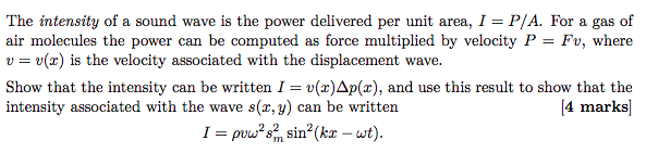 Solved The intensity of a sound wave is the power delivered | Chegg.com