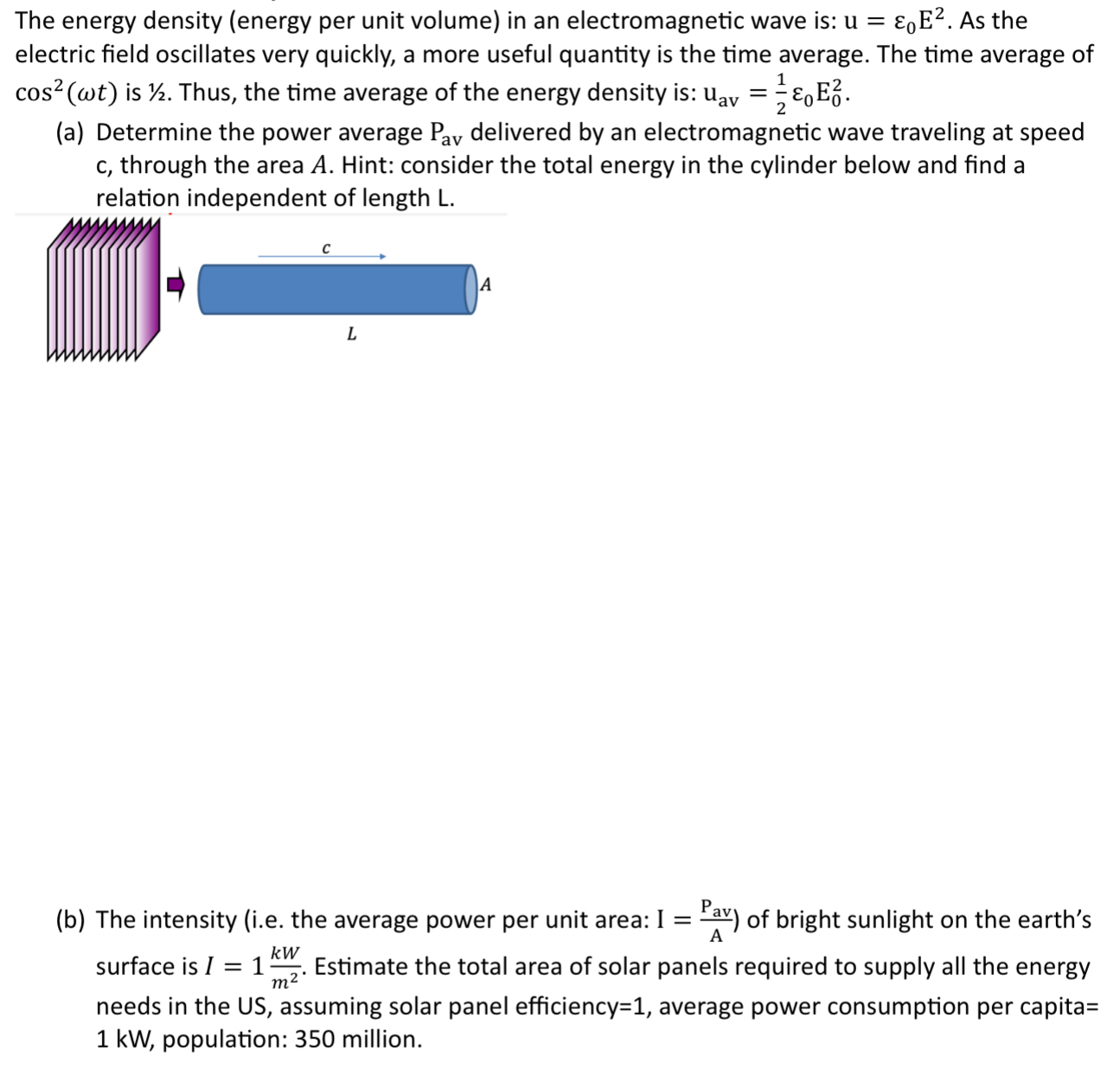 Solved (b) The intensity (i.e. the average power per unit | Chegg.com