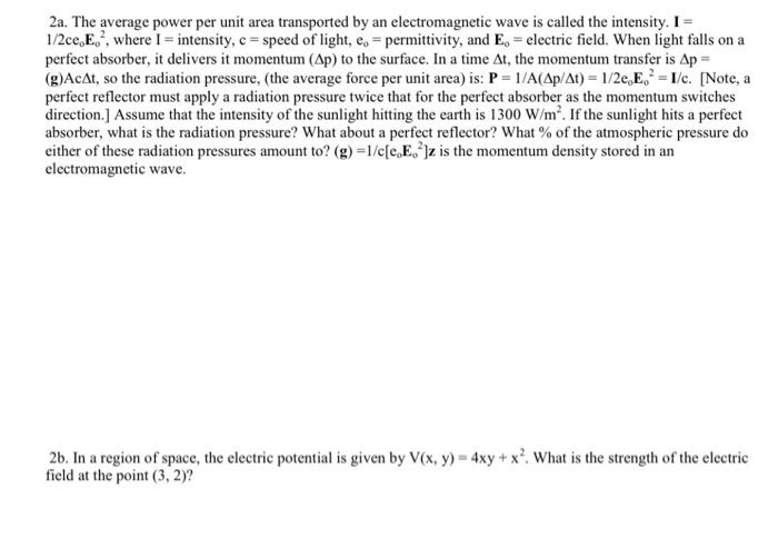 Solved 2a. The average power per unit area transported by an | Chegg.com