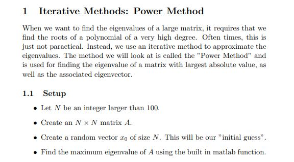 Solved 1 Iterative Methods: Power Method When we want to | Chegg.com