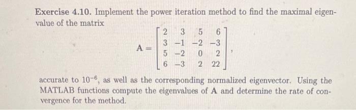 Solved Exercise 4.10. Implement the power iteration method | Chegg.com