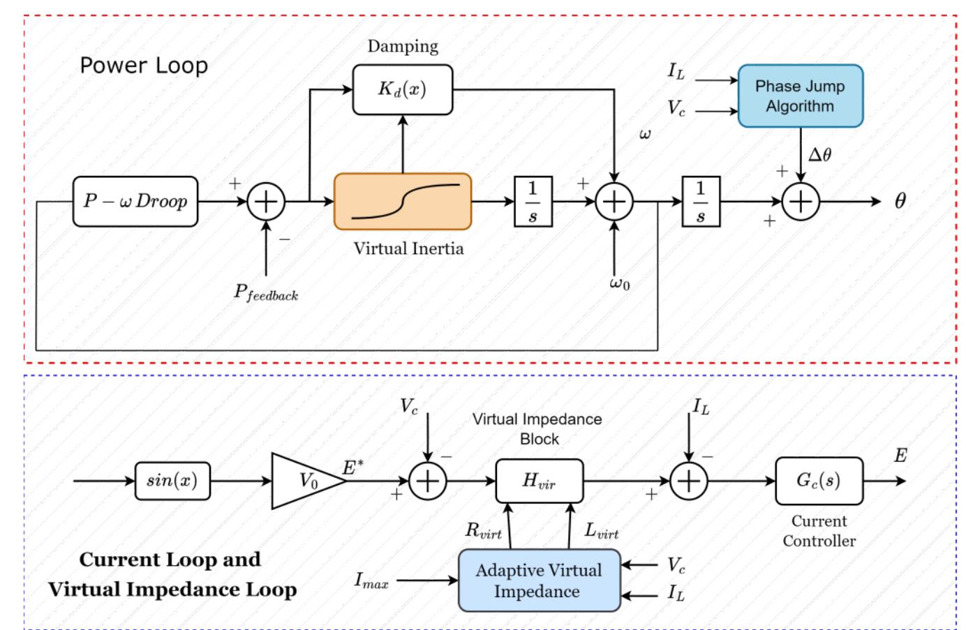 Detailed control diagram of VSG. (a) Power loops. (b) Inner dual loops ...