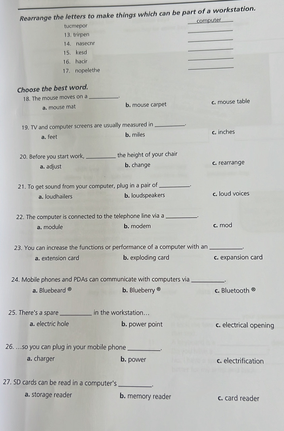 Giải quyết:Rearrange the letters to make things which can be part of a ...