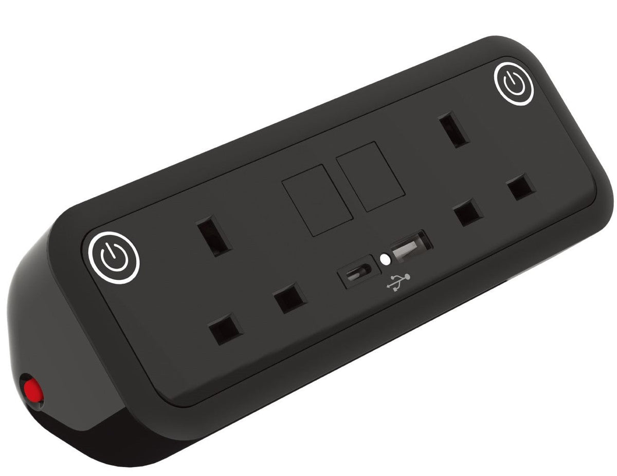 Black Desk Mounted Power Modules For Hire | 2 Mains Sockets, USB A & C