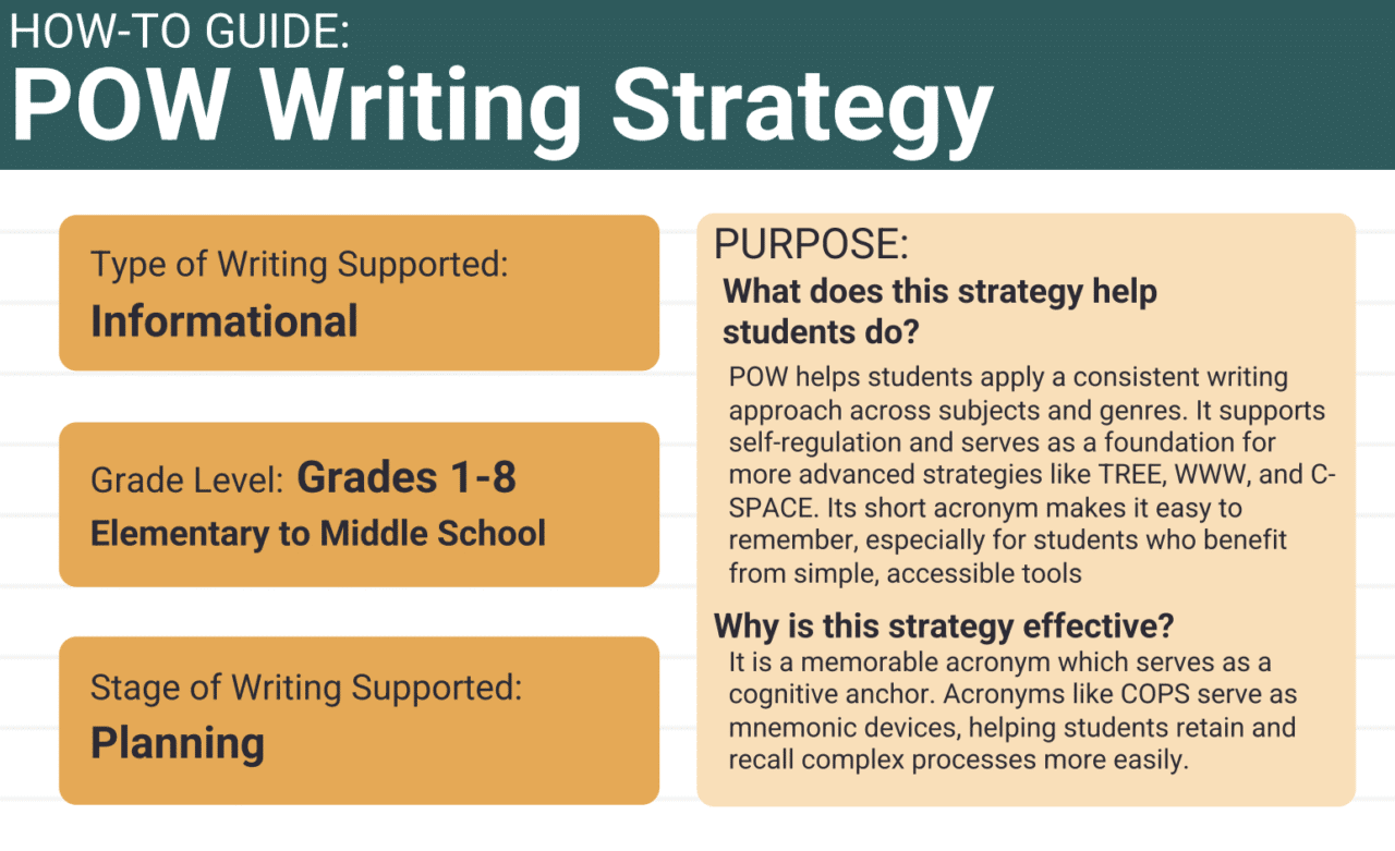Pick Ideas, Organize, Write and Say More (POW) Strategy | Writing Classroom
