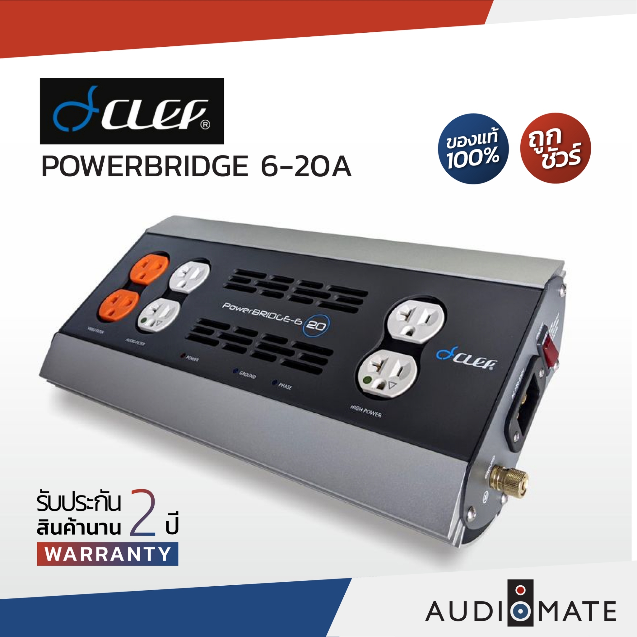 CLEF POWERBRIDGE 2C 20A เครื่องกรองไฟ กันไฟกระชาก 2 ช่องเสียบ ยี่ห้อ ...
