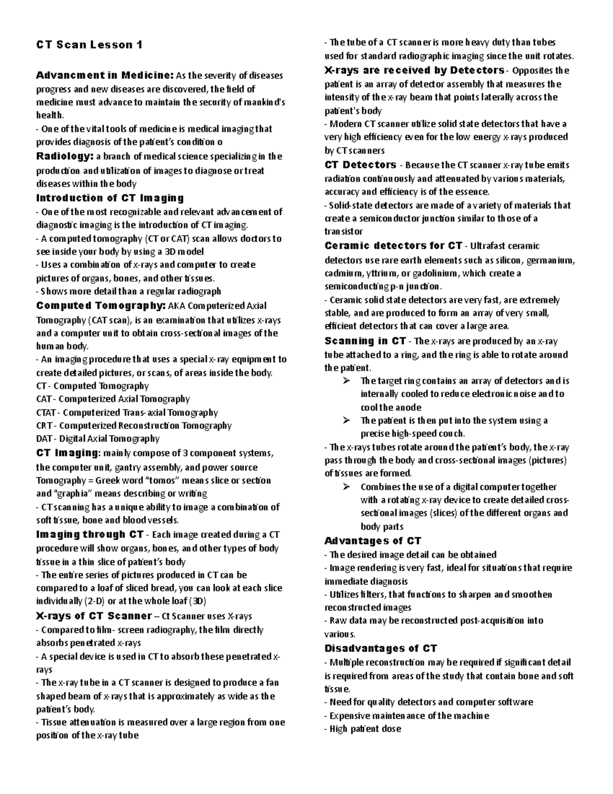 CT Scan Lesson 1: Advancements in Medical Imaging Techniques - Studocu