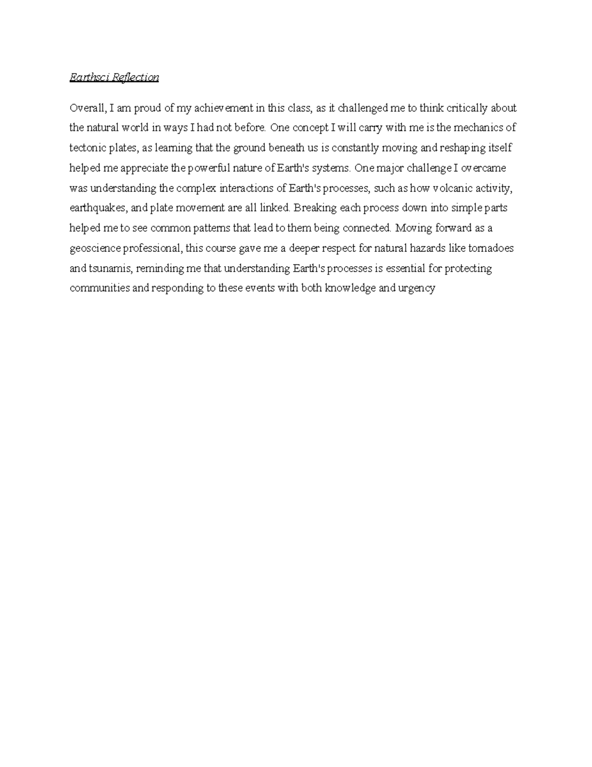 Earth Science Reflection: Insights on Tectonic Plates and Natural ...