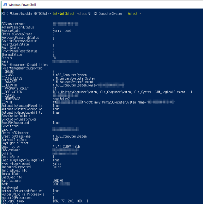 Powershell 파워쉘 Windows 하드웨어 정보 가져오기 : 네이버 블로그