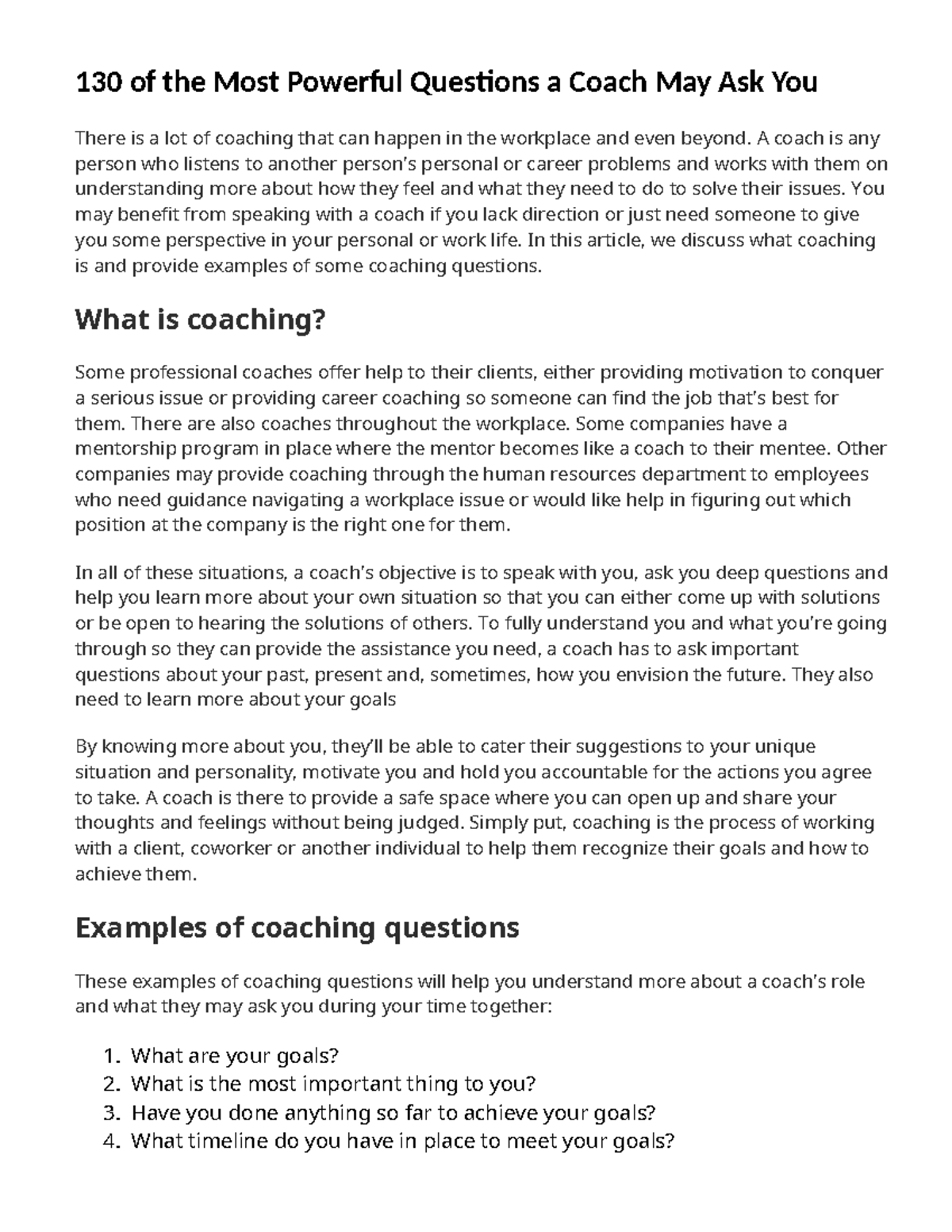 130 of the Most Powerful Questions a Coach May Ask you X - A coach is ...