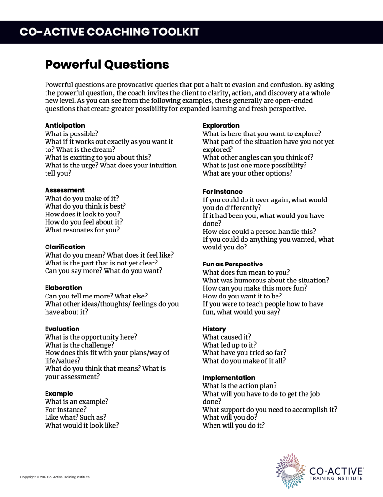 Powerful Questions Coaching Activity Handout - Powerful Questions ...