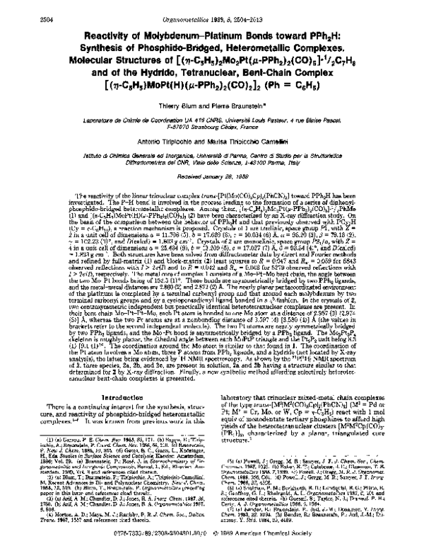 (PDF) Reactivity of molybdenum-platinum bonds toward PPh2H: Synthesis ...