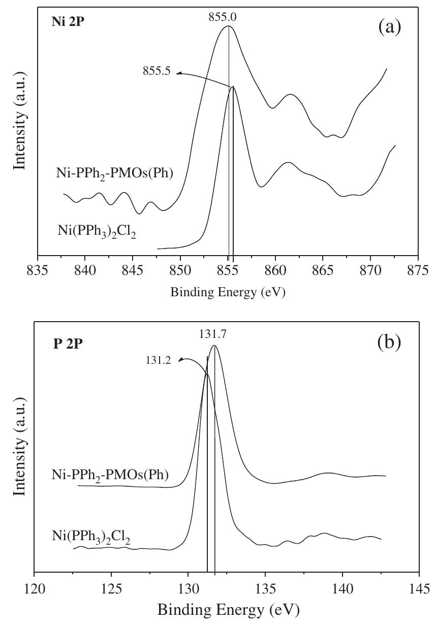 Xps spectra of ni(pph3)2clp and ni-pph2-pmos(ph) samples: