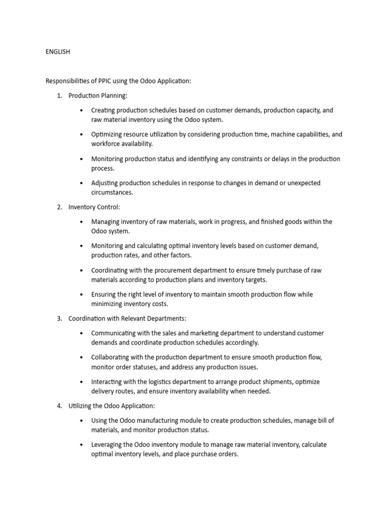 PPIC Responsibilities in Odoo System | PDF | Inventory | Logistics