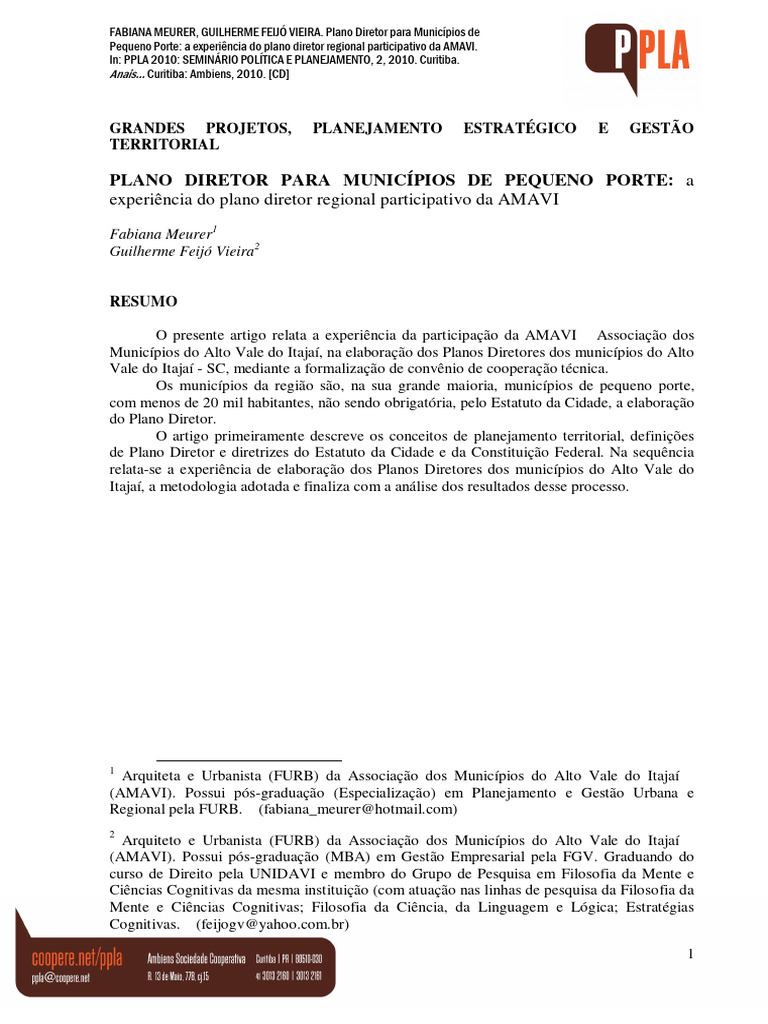Artigo Plano Diretor PPLA | PDF | Planejamento urbano