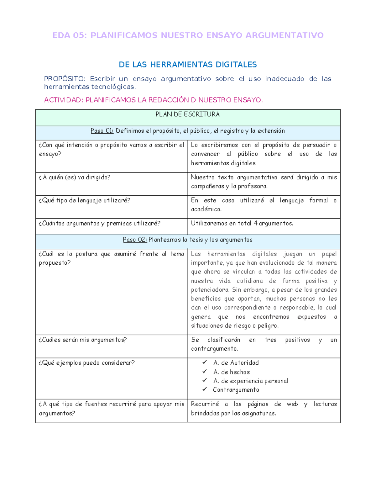 EDA 05 - ppppppppppppppppppp - EDA 05: PLANIFICAMOS NUESTRO ENSAYO ...