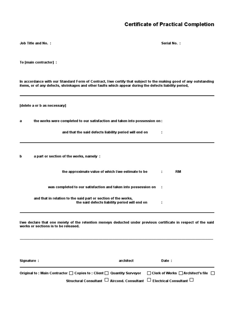 Practical Completion Certificate Template Uk - Great Design Layout ...