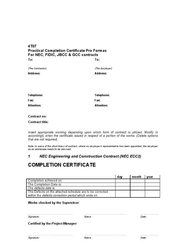 Practical Completion Certificate Template Uk - TEMPLATES EXAMPLE ...
