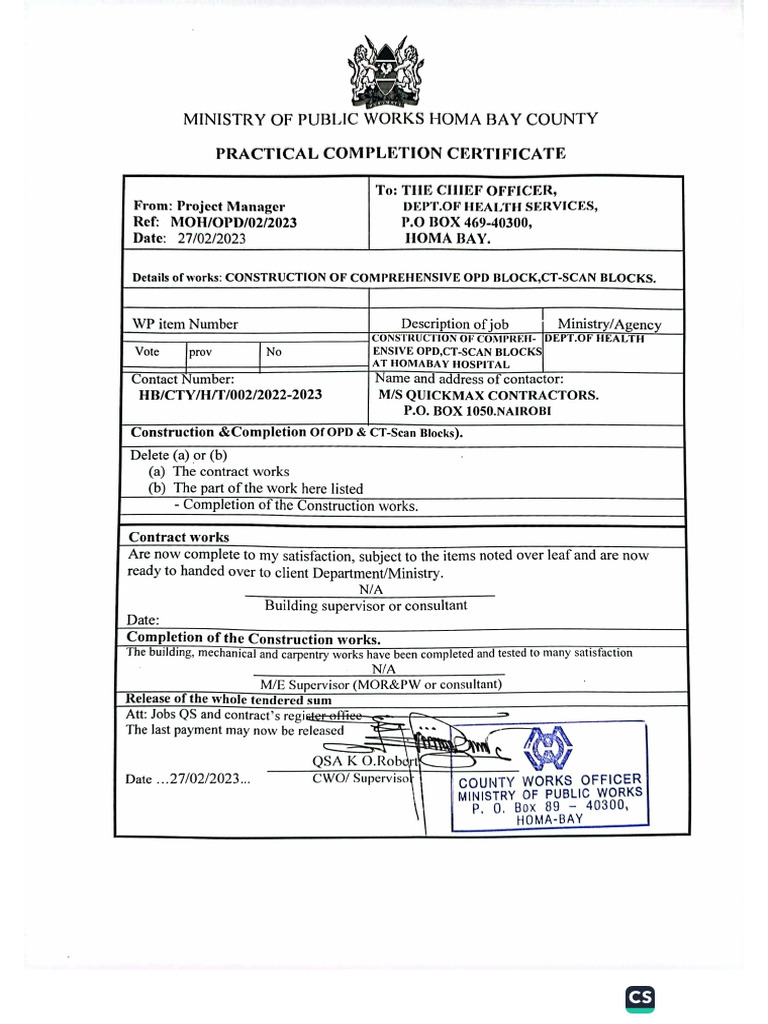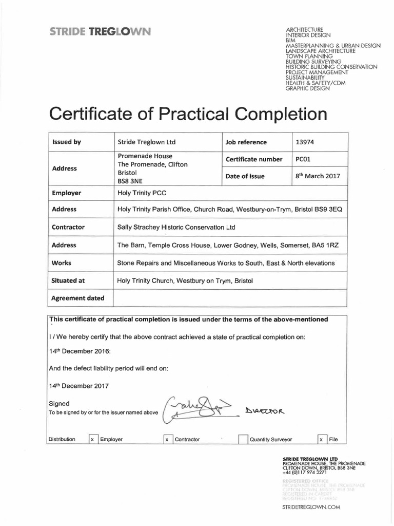 Certificate of Practical Completion - Keyon-has-Ramsey