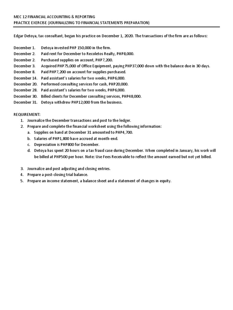 Comprehensive problem 1- Part 1, 2, and 3 - ACC 201 (ACC201) - Stuvia US