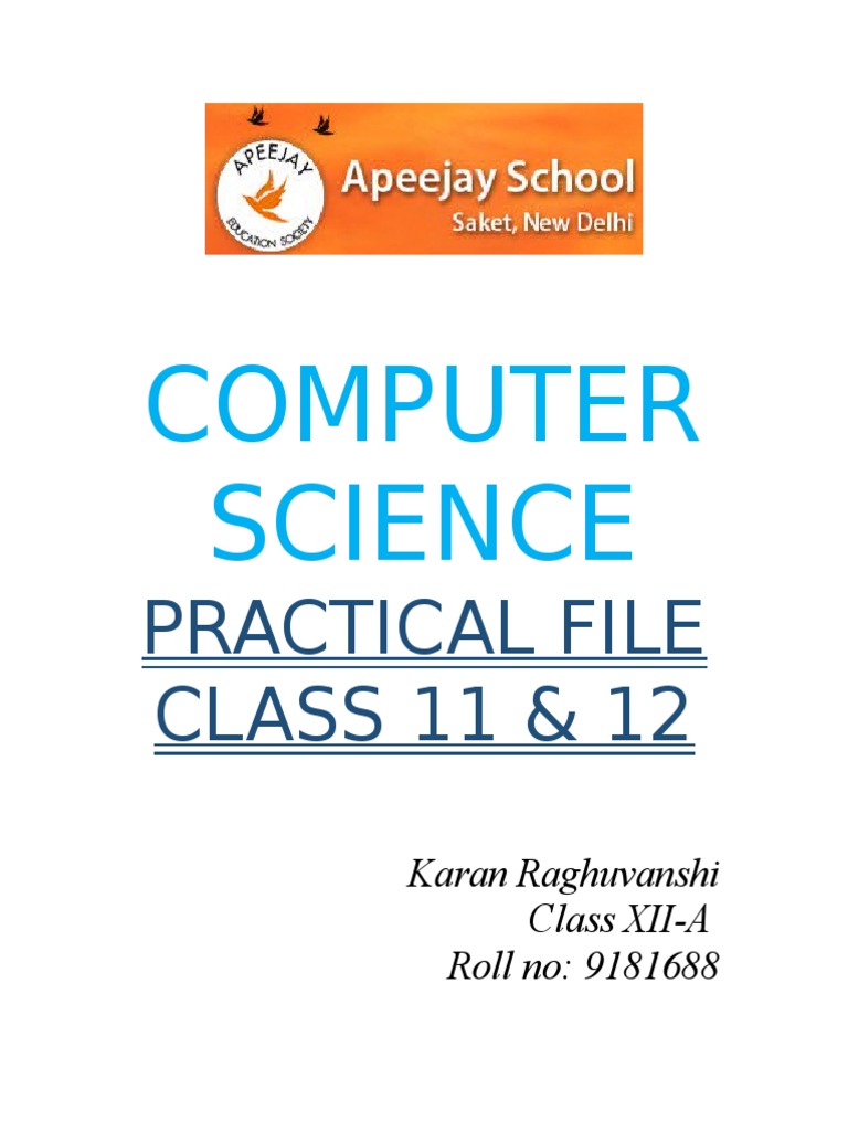 Computer Science Practical File - Class 12th (G.A.V. Public School ...