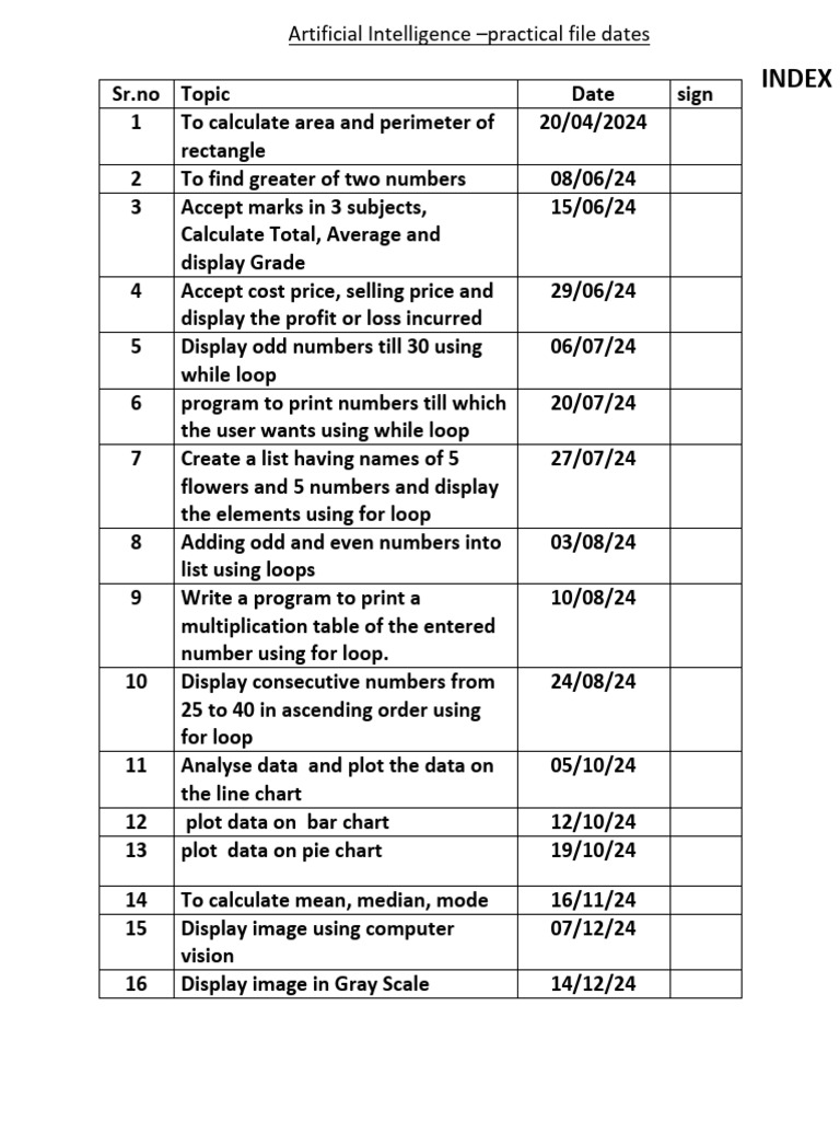AI Practical File INDEX WITH DATES | PDF | Teaching Methods & Materials